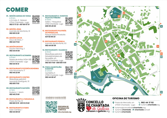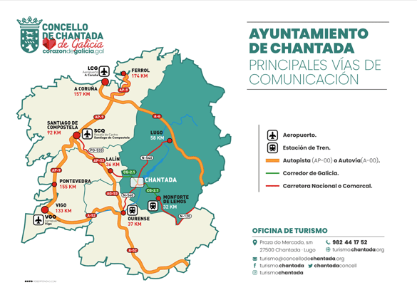 En el año 2002, tras la declaración en 2000 de Chantada como Municipio de Interés Turístico , se abre la Oficina Municipal de Turismo de Chantada , ubicada en la emblemática Casa de Lemos del siglo XVI, que fue restaurada por el arquitecto Manuel Gallego Jorreto .